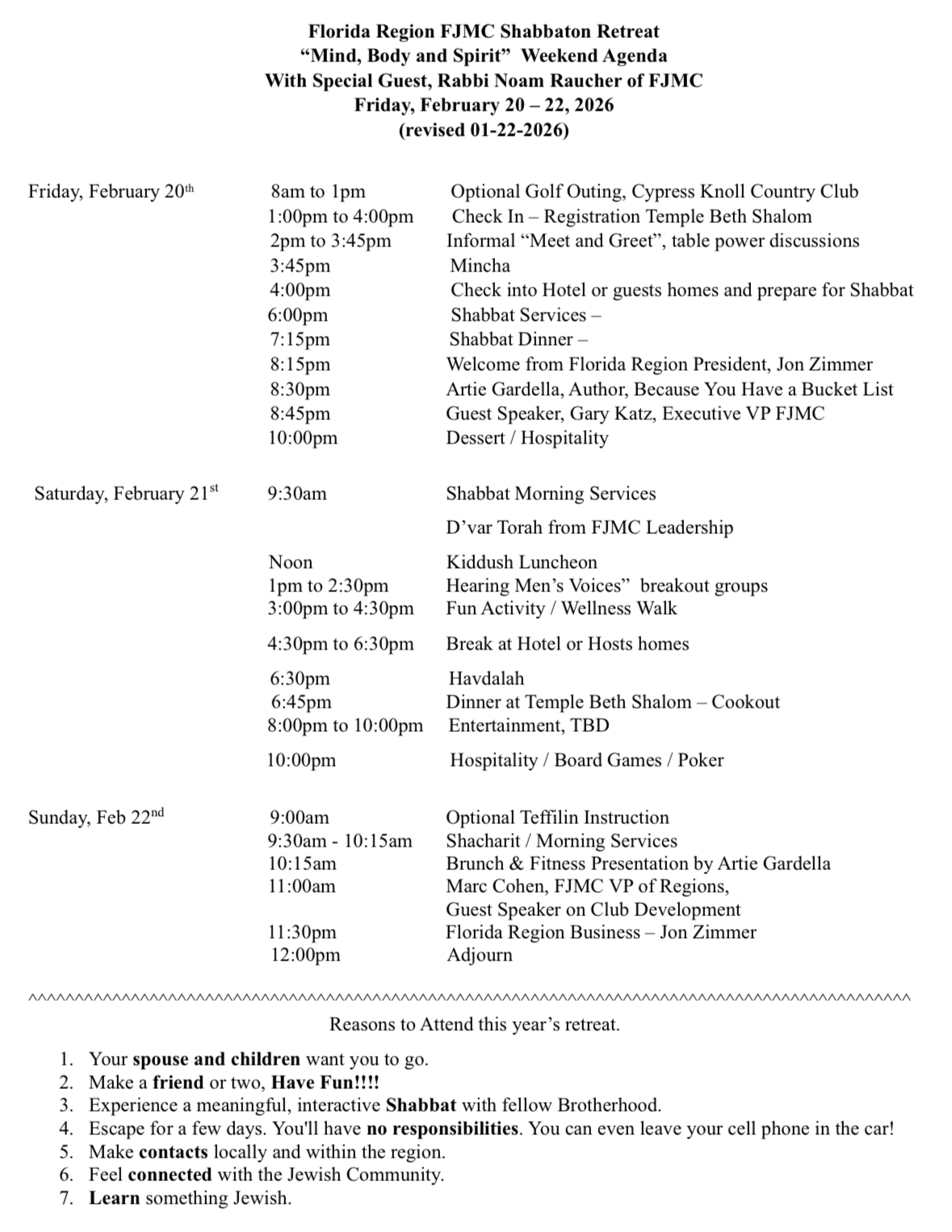 Register to attend the Florida Region FJMC 2026 Shabbaton Retreat at: